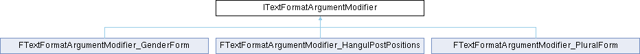 Inheritance diagram for ITextFormatArgumentModifier:Public Member Functions | |