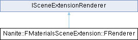 Inheritance diagram for Nanite::FMaterialsSceneExtension::FRenderer:Public Member Functions | |