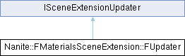 Inheritance diagram for Nanite::FMaterialsSceneExtension::FUpdater:Public Member Functions | |