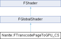 + Inheritance diagram for Nanite::FTranscodePageToGPU_CS: