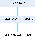 Inheritance diagram for SListPanel::FSlot:Additional Inherited Members | |