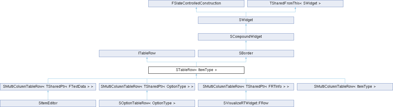 | void | Construct (const typename STableRow< ItemType >::FArguments &InArgs, const TSharedRef< STableViewBase > &InOwnerTableView) |