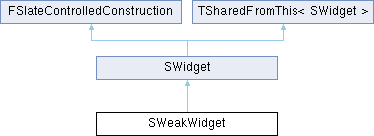 Weak widgets encapsulate a piece of content without owning it. e.g. A tooltip is owned by the hovered widget but displayed by a floating window. That window cannot own the tooltip and must therefore use an SWeakWidget.
