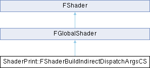 Inheritance diagram for ShaderPrint::FShaderBuildIndirectDispatchArgsCS:Additional Inherited Members | |