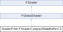 Inheritance diagram for ShaderPrint::FShaderCompactStateBufferCS:Additional Inherited Members | |