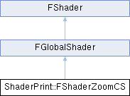 Inheritance diagram for ShaderPrint::FShaderZoomCS:Additional Inherited Members | |
