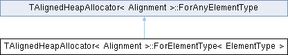 Inheritance diagram for TAlignedHeapAllocator< Alignment >::ForElementType< ElementType >:Public Member Functions | |