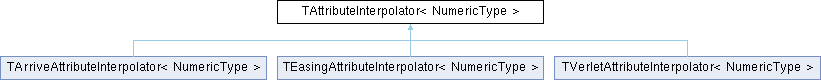 Inheritance diagram for TAttributeInterpolator< NumericType >:Public Member Functions | |