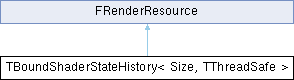 Inheritance diagram for TBoundShaderStateHistory< Size, TThreadSafe >:A list of the most recently used bound shader states. This is used to keep bound shader states that have been used recently from being freed, as they're likely to be used again soon.