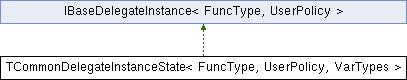 Inheritance diagram for TCommonDelegateInstanceState< FuncType, UserPolicy, VarTypes >:Public Member Functions | |