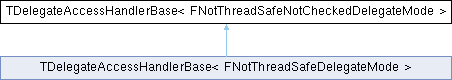 Inheritance diagram for TDelegateAccessHandlerBase< FNotThreadSafeNotCheckedDelegateMode >:Classes | |