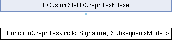 Inheritance diagram for TFunctionGraphTaskImpl< Signature, SubsequentsMode >:Public Member Functions | |