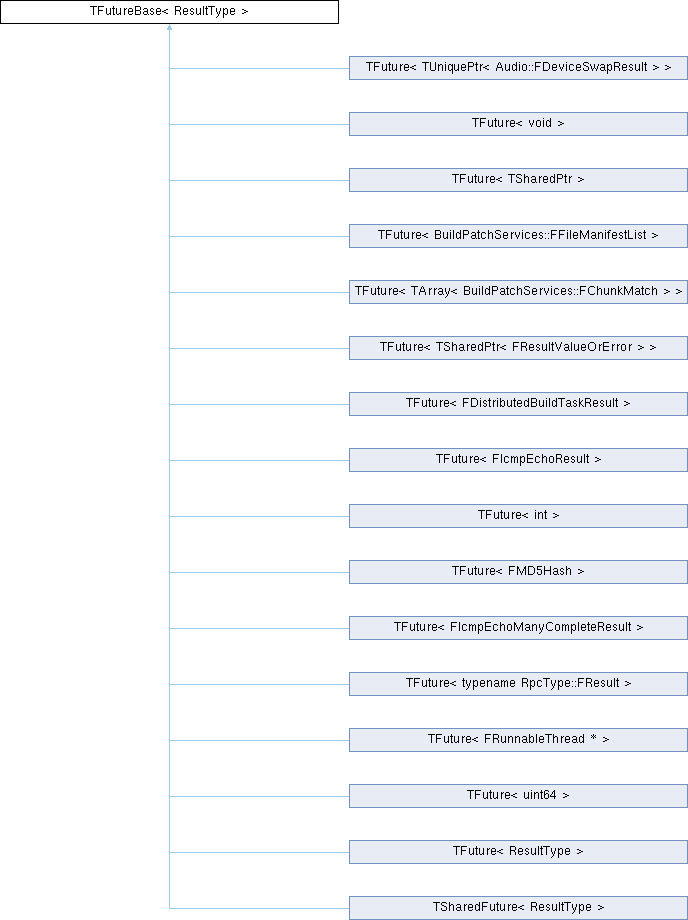 Inheritance diagram for TFutureBase< ResultType >:Public Types | |