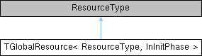 Inheritance diagram for TGlobalResource< ResourceType, InInitPhase >:Public Member Functions | |