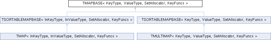 The base class of maps from keys to values. Implemented using a TSet of key-value pairs with a custom KeyFuncs, with the same O(1) addition, removal, and finding.