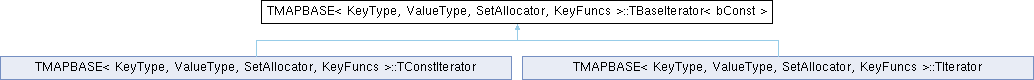 Inheritance diagram for TMAPBASE< KeyType, ValueType, SetAllocator, KeyFuncs >::TBaseIterator< bConst >:Public Types | |