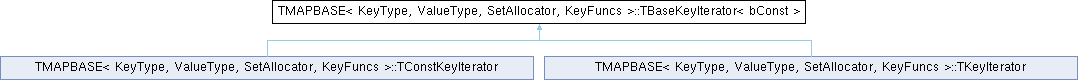 Inheritance diagram for TMAPBASE< KeyType, ValueType, SetAllocator, KeyFuncs >::TBaseKeyIterator< bConst >:Public Member Functions | |