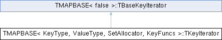 Inheritance diagram for TMAPBASE< KeyType, ValueType, SetAllocator, KeyFuncs >::TKeyIterator:Public Types | |