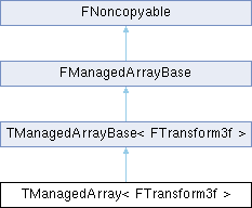 Inheritance diagram for TManagedArray< FTransform3f >:Protected Member Functions | |