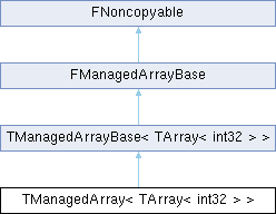 Inheritance diagram for TManagedArray< TArray< int32 > >:Additional Inherited Members | |