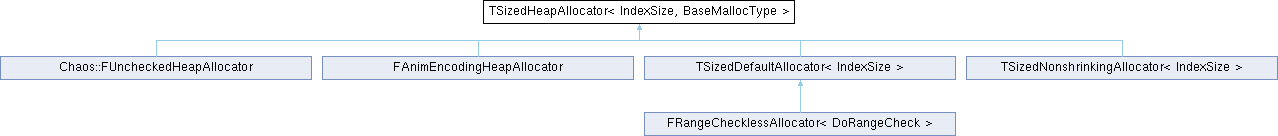 Inheritance diagram for TSizedHeapAllocator< IndexSize, BaseMallocType >:Classes | |