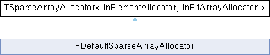 Inheritance diagram for TSparseArrayAllocator< InElementAllocator, InBitArrayAllocator >:Public Types | |