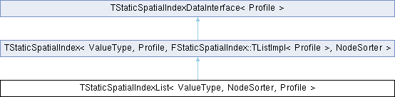 Inheritance diagram for TStaticSpatialIndexList< ValueType, NodeSorter, Profile >: