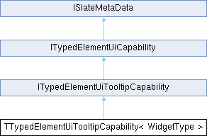 Inheritance diagram for TTypedElementUiTooltipCapability< WidgetType >:Public Member Functions | |