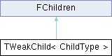 Inheritance diagram for TWeakChild< ChildType >:Public Member Functions | |