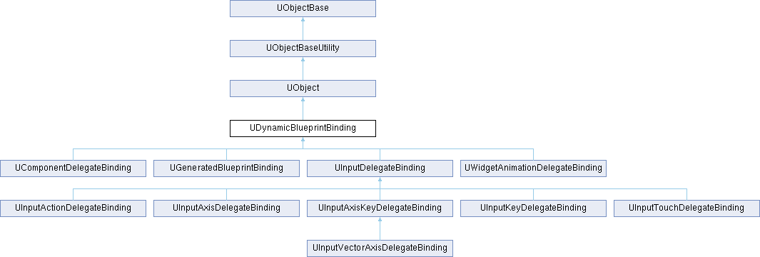 To use, override 'K2Node::GetDynamicBindingClass' to specify a child of this class. Additionally, override 'K2Node::RegisterDynamicBinding'. During compilation, your node will be given an instance of the specified binding class to use for binding delegates.