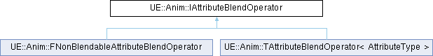 Inheritance diagram for UE::Anim::IAttributeBlendOperator:Public Member Functions | |