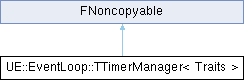 Inheritance diagram for UE::EventLoop::TTimerManager< Traits >:Public Types | |