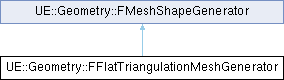 Inheritance diagram for UE::Geometry::FFlatTriangulationMeshGenerator:Public Attributes | |