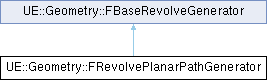 Inheritance diagram for UE::Geometry::FRevolvePlanarPathGenerator:Public Member Functions | |