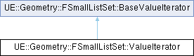 Inheritance diagram for UE::Geometry::FSmallListSet::ValueIterator:Public Member Functions | |