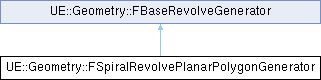 Inheritance diagram for UE::Geometry::FSpiralRevolvePlanarPolygonGenerator:Public Member Functions | |