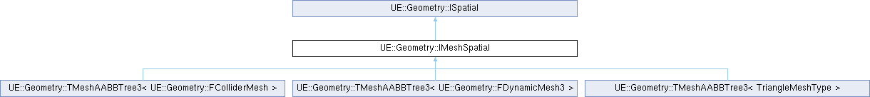 Inheritance diagram for UE::Geometry::IMeshSpatial:Classes | |