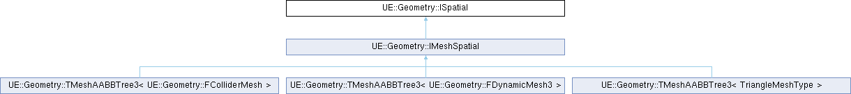 Inheritance diagram for UE::Geometry::ISpatial:Public Member Functions | |