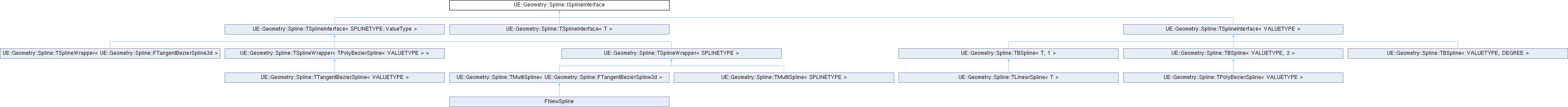 Inheritance diagram for UE::Geometry::Spline::ISplineInterface:Public Member Functions | |