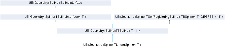 Inheritance diagram for UE::Geometry::Spline::TLinearSpline< T >:Public Types | |