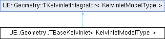 Inheritance diagram for UE::Geometry::TBaseKelvinlet< KelvinletModelType >:Public Member Functions | |
