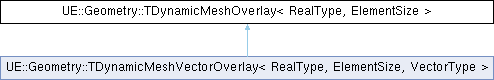 Inheritance diagram for UE::Geometry::TDynamicMeshOverlay< RealType, ElementSize >:Public Types | |