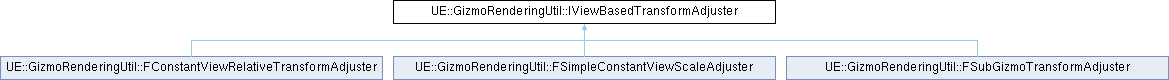 Inheritance diagram for UE::GizmoRenderingUtil::IViewBasedTransformAdjuster:Public Member Functions | |