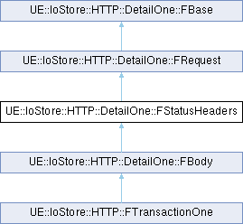 Inheritance diagram for UE::IoStore::HTTP::DetailOne::FStatusHeaders:Public Member Functions | |