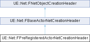 Inheritance diagram for UE::Net::FPreRegisteredActorNetCreationHeader:Public Member Functions | |