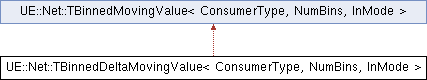 Inheritance diagram for UE::Net::TBinnedDeltaMovingValue< ConsumerType, NumBins, InMode >:Public Member Functions | |