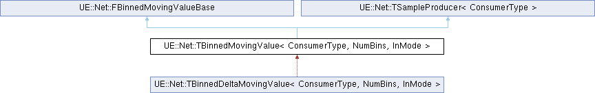 Inheritance diagram for UE::Net::TBinnedMovingValue< ConsumerType, NumBins, InMode >:Public Member Functions | |