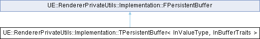 Inheritance diagram for UE::RendererPrivateUtils::Implementation::TPersistentBuffer< InValueType, InBufferTraits >:Public Types | |