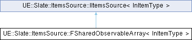 Inheritance diagram for UE::Slate::ItemsSource::FSharedObservableArray< InItemType >:Public Types | |