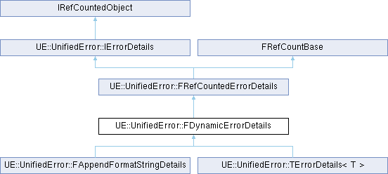 Inheritance diagram for UE::UnifiedError::FDynamicErrorDetails:Public Member Functions | |